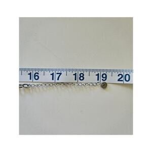 Ann Taylor Loft Bib Statement Necklace with Reverse Set Grey Rhinestones Silver Tone Chain. The upper rhinestones are backed with gold foil, and the lower ones are reverse set and backed with silver foil giving a slightly different color to the two rows. The top row gives off a slightly more blue/green tone. ~19" in length including the extender, the shortest length is ~14". This necklace is stunning!