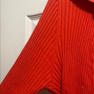 Get wrapped up in cozy chic, courtesy of this ribbed soft knit cardigan with a flattering tied waist. Point collar. Long sleeves. Ties at waist. Worn once to try on. Like new condition.