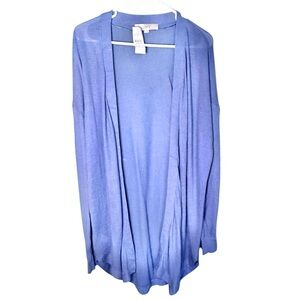 Loft Ribbed Knit Open Front Cardigan Lt. Blue Size Large NWT!