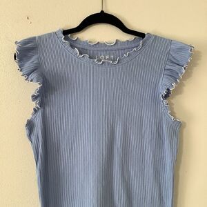 Loft Ribbed Pastel Blue Preppy Feminine Minimalist Clean Girl Ruffle Top Large