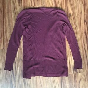 Lovely maroon cardigan with ribbed sleeves and bottom! Perfect cardigan for day or night look! True to size. Worn multiple times, but still in great condition!