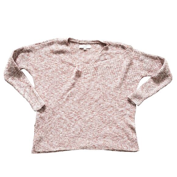 Loft Ribbed V-Neck Heathered Red Brown Tunic Sweater Women Sz M