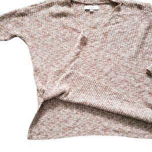 Loft Ribbed V-Neck Heathered Red Brick Tunic Sweater Women Sz M