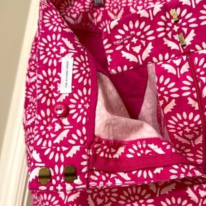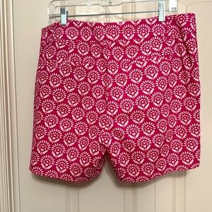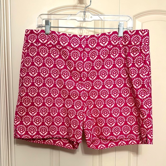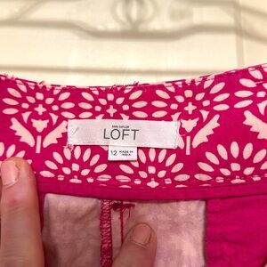 Patterned pink Riviera fit Loft shorts, 6 in. inseam.