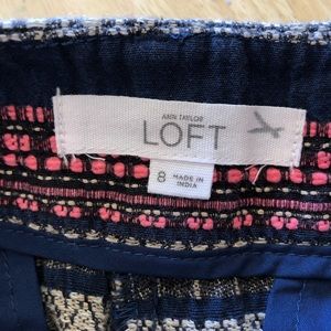 Loft Riviera shorts, size 8. The shorts have front pockets and a zipper fly. Laid flat approximate length is 12 1/4” and across the waist is approximately 16 1/2”.