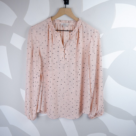Loft Ruffle Collar Pink Patterned Blouse | M