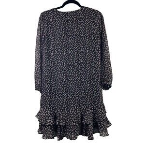 Loft Ruffle Ditsy Floral Vine Dress Knee Length Semi Sheer Long Sleeves Size XS