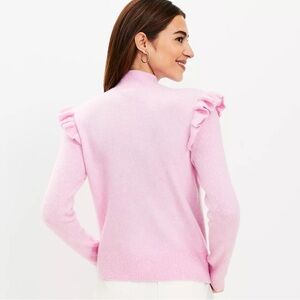 Ruffled shoulders treat this cozy and polished knit to an outfit-boosting pop of pretty. Mock neck. Long sleeves.