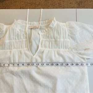 Loft Ruffle Neckline Short Sleeve Blouse Women Size Small White