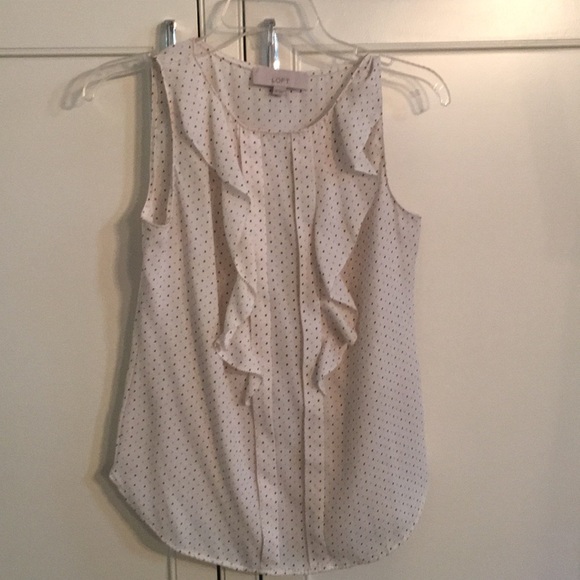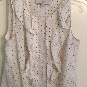 Navy and tan polka dotted ruffle shell from the LOFT. Size XS. Very good condition.