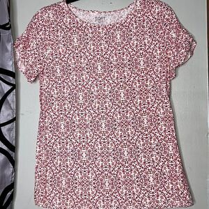 Excellent condition T-shirt! Very pretty pink design with ruffle sleeves and slits on sides! Soft 100% cotton! Very roomy, size small