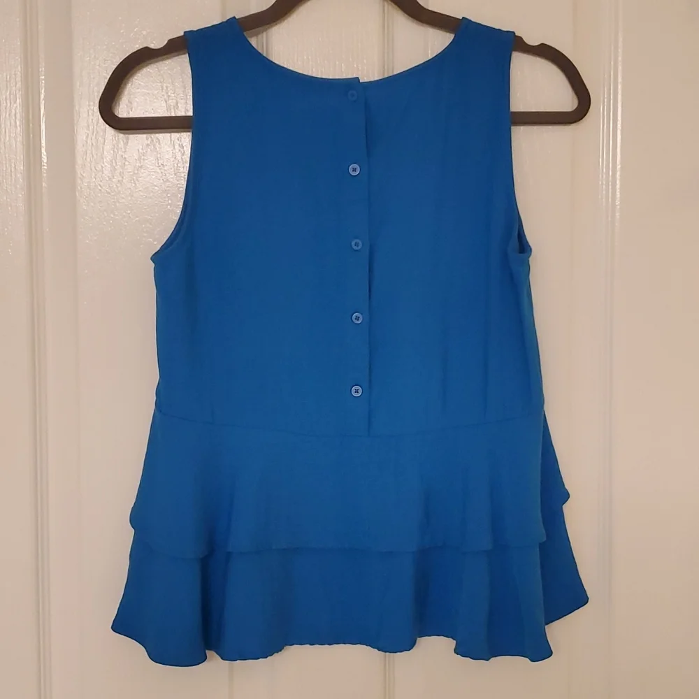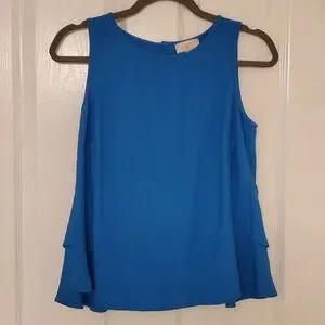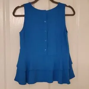 LOFT XS beautiful peacock blue ruffled tank. LIKE NEW NO VISIBLE WEAR.