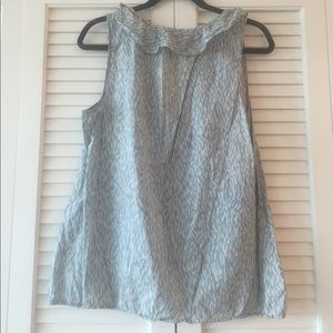 Loft sleeveless, button-down blouse with ruffles around the collar.