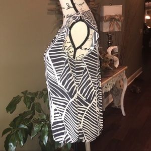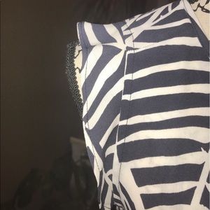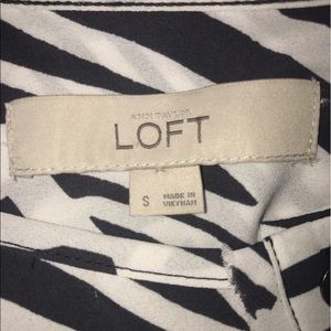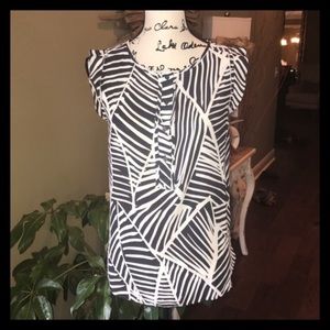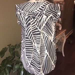 Gorgeous top from LOFT in navy and white palm print. Reminds me of Hawaii or vacation! Great condition. 4 buttons on front and ruffles on cap sleeves.