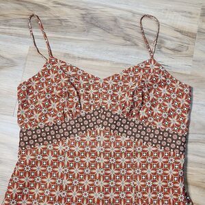 🔹️Loft Rust & Cream Spaghetti Strap Ruffle Midi Dress Petite 8