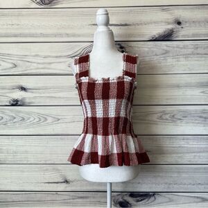 Rust red & white plaid peplum tank top