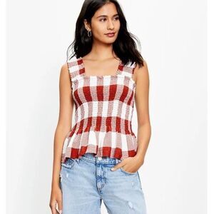Loft Rust & White Smocked Stretchy Peplum Sleeveless Top