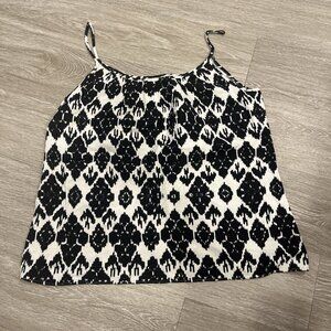 Loft S Black White Ikat Pattern Linen Blend Tank Top Camisole Boho Summer Top