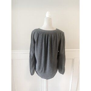 Loft S Gray Rayon Popover Blouse With Puff Sleeves - EUC