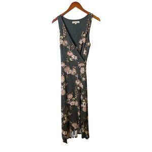 Loft Sage Green Floral Rayon Wrap Maxi Dress Women's Size Small