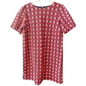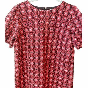 Loft Red Floral Jaquard Shift Dress. Size Large. Measures 17” P2P and is 34” long from shoulder to hem. Fabric Content: 48% Cotton/ 26% Poly/ 20% Nylon/ 1% Spandex. This dress is in excellent preowned condition with minimal wear. No stains, snags, or flaws.