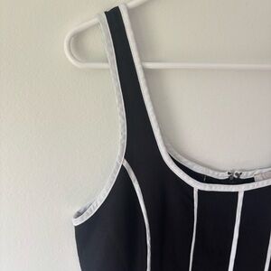 Loft Seamed Linen Blend Midi Dress Black White Preppy Feminine Chic