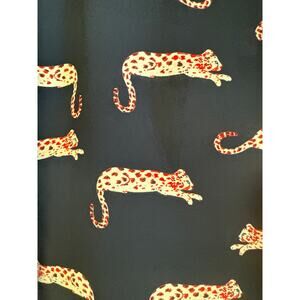 Loft Sheer Navy Collar Button Down Leopard Cat Novelty Print Blouse