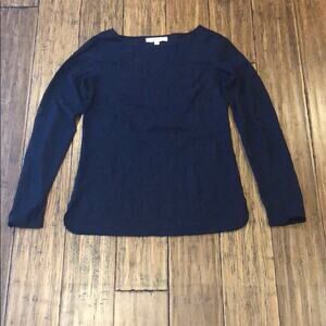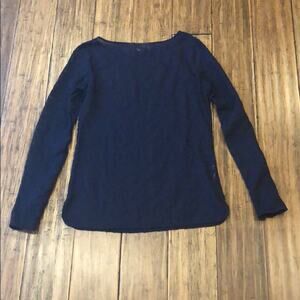 Ann Taylor Loft navy blue sheer lace long sleeve blouse. Longer tunic style. Materials tag cut out.