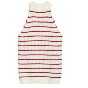 Preowned Loft Shimmer Red and Cream Stripe Stitchy Halter Sleeveless Sweater Sz Small in excellent condition