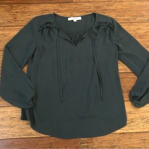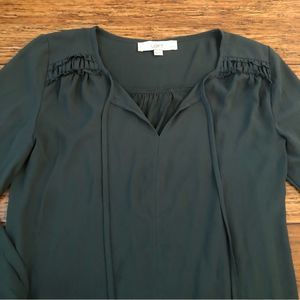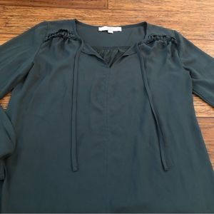 Deep forest green color, light chiffon type fabric. Pretty details near the neckline.