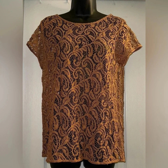 Loft Shirt Camel Tan Floral Overlay Lace Unlined Shirt Blouse in great condition.