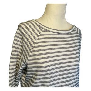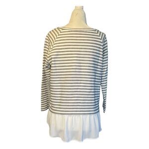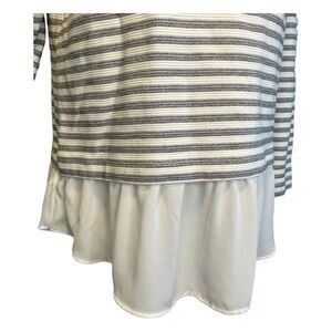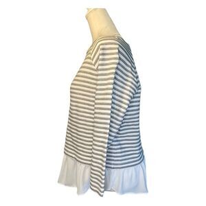 Loft Shirt Tail Hem Striped Top Black White Knit Ruffle 3/4 Sleeves Crewneck S