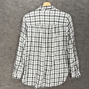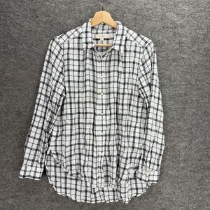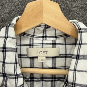 Loft Shirt Women M Medium White Plaid Button Up Collared Long Sleeve Rayon