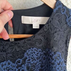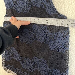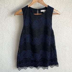 Loft Shirt Womens Small Blue‎ Black Lace Overlay Sleeveless Top Blouse