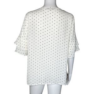 Loft Shirt Womens Small White Black Polka Dot Ruffle Casual Workwear Versatile