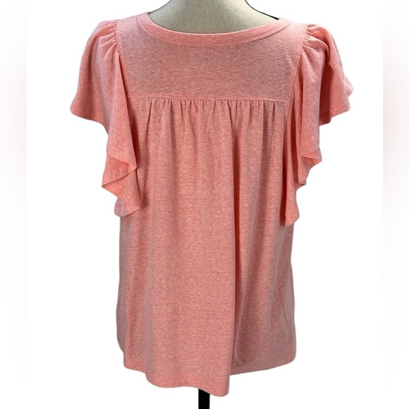 Loft Short Ruffle Cap Sleeve Crew Neck Tee Shirt - Bundle of 2 - Grey Pink - Med