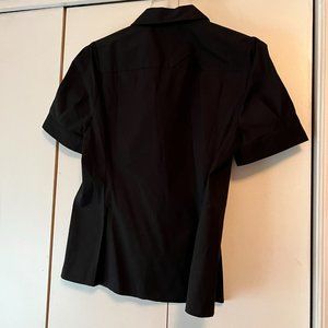 Loft Short Sleeve Black Button Down Blouse - 12P