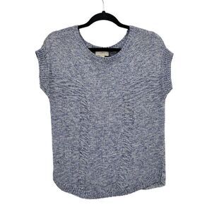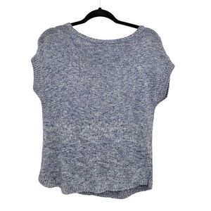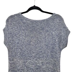 Loft Short Sleeve Knit Top XS Blue Speckled Boxy Casual Comfy Stretch Non-Itch