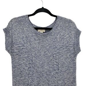Loft Short Sleeve Knit Top XS Blue Speckled Boxy Casual Comfy Stretch Non-Itch