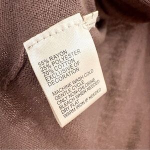 Loft Short Sleeve Ribbon Tie Gathered Neckline Cardigan Sweater Dark Taupe Gray