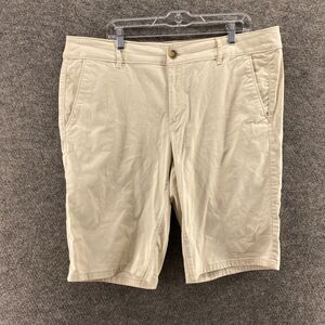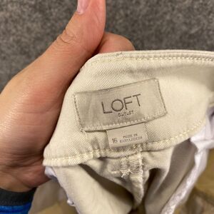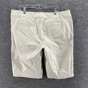 Loft Shorts Women 16 Beige High Rise Flat Front Bermuda Pockets Cotton Casual