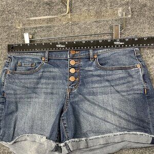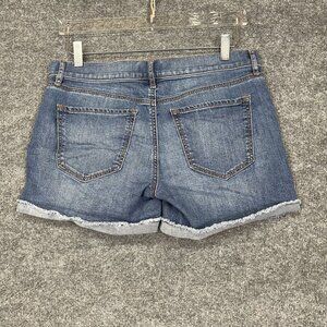 Loft Shorts Womens 4 Blue Jeans Denim Button Fly Cut Off Cotton Stretch Whiskering Medium Wash. Good Pre-owned condition. No found flaws or stains. See photos for measurements. Ships quickly from smoke-free home. 1590a