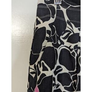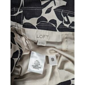 Loft Size 0 Linen Blend A Line Ruffled Tie Waist Pleated Pocket Black Cream Pink Floral Skirt