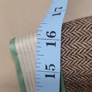 Loft, Size 10P, Wool Blend A-Line Skirt, Brown Herringbone Pattern, Green Accent. Excellent Condition, No Holes, Stains, Rips or Snags. Classy yet Fun, Flared A-Line Skirt. Brown & Tan Herringbone Pattern with Light Green Satin Stripe Down Front Middle - Accented with Green Beads. Light Green and Cream Satin Waistband. Side Zipper Closure with Hook and Eye. Inverted Front Pleat. Please refer to measurements in photos to ensure proper fit.