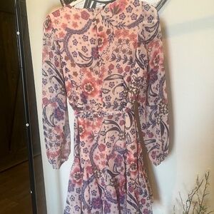 Pink patterned dress perfect for your fall wardrobe with darker pink, brown and purple accent flowers. Worn a few times but now is too big since starting my weight loss journey. My loss is your gain!