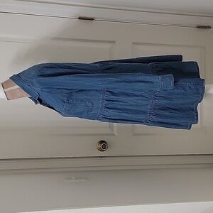 Loft, Size S, Chambray Tiered Pocket Dress, Button Front, Excellent Used Condition. No Holes, Rips, Snags or Stains. Super Comfy and Soft! Great with Leggings or Boots! Please refer to measurements in photos to ensure proper fit. Shown on a size 6 mannequin.