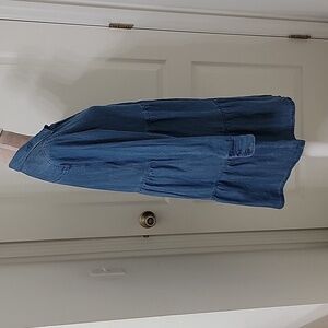 Loft, Size S, Chambray Tiered Pocket Dress, Button Front, Excellent Used Cond.