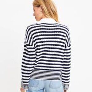 Loft Size Small Mixed Stripe Collared V-Neck Sweater