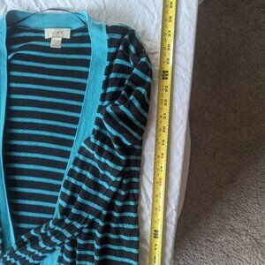 This will add just a little warmth, but it's thin sweater material. Good condition, pretty colors.