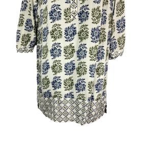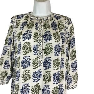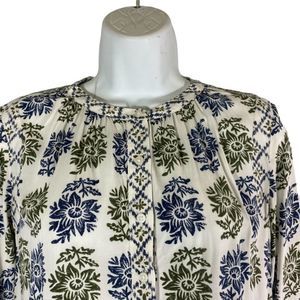 Loft Size XS Dress Sheath Button Front White Blue Floral Print Half Sleeve